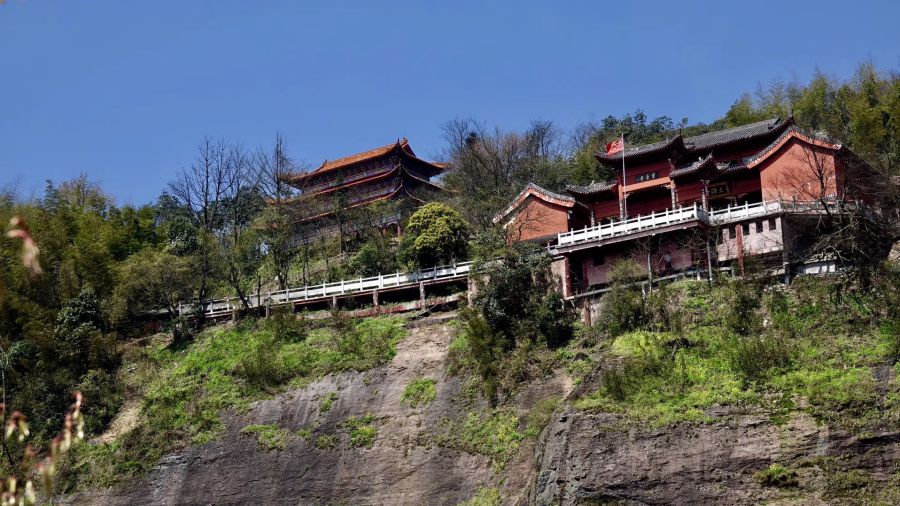 乘索道或步行登上八角寨觀景臺可以俯瞰崀山丹霞的全貌。李仁奇 攝
