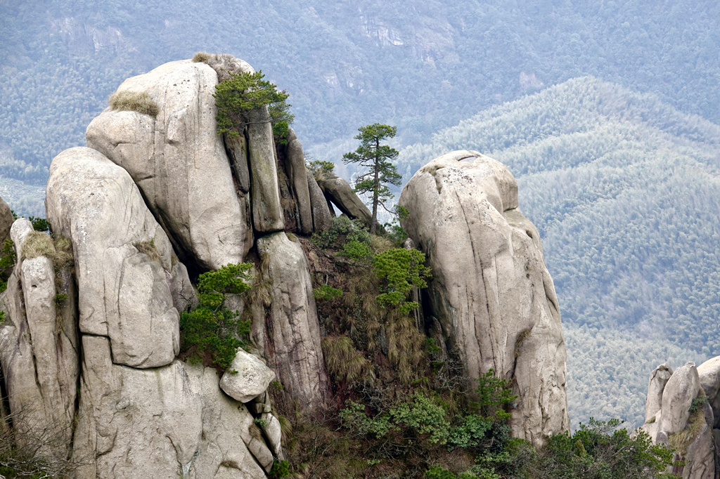 由于其隆起幅度自核心部位向周圍逐漸減小,外圍山地由硬度較花崗巖小的花崗閃長巖和沉積巖組成,易被沖刷蝕低,故整個九華山體由眾多千姿百態(tài)、高低參差的中山、低山、丘陵和山間盆地等組成。李仁奇 攝