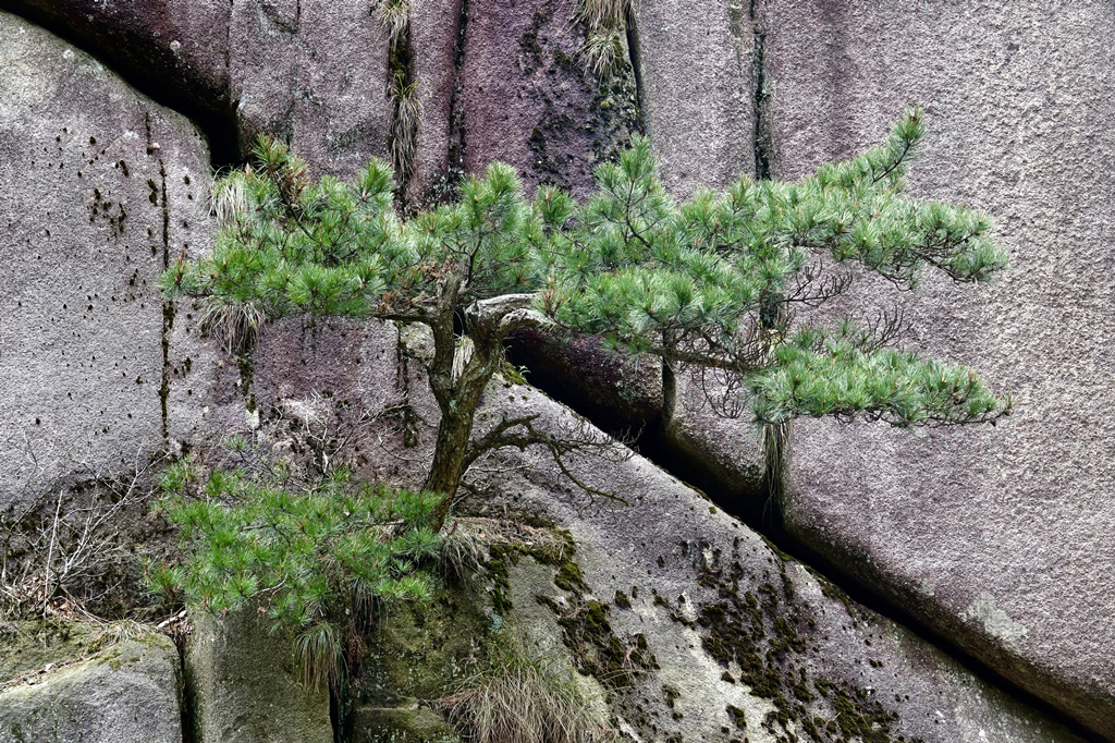 生長在巖石峭壁縫隙的松樹,枝干蒼勁,郁郁蔥蔥。李仁奇 攝