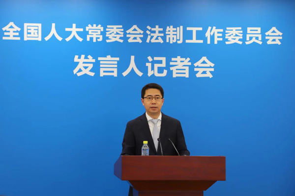 法工委發(fā)言人臧鐵偉向記者通報(bào)情況。攝影/《中國(guó)人大》全媒體記者?侯朝宣