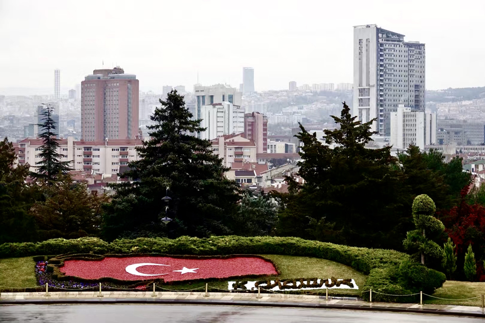 國(guó)父紀(jì)念館正門對(duì)面有個(gè)用獻(xiàn)花組成的土耳其國(guó)旗花壇。李仁奇 攝