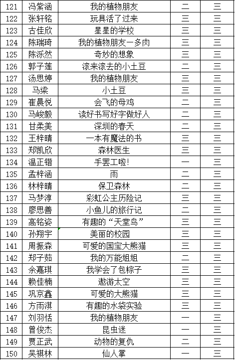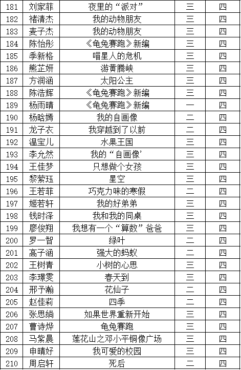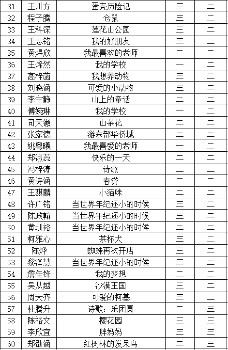 自2021年1月,活動(dòng)征稿啟動(dòng)以來(lái),獲得了深圳市廣大中小學(xué)生、教師、文學(xué)愛(ài)好者的熱烈響應(yīng)積極參與,吸引了深圳百余所學(xué)校的上萬(wàn)人關(guān)注報(bào)名?,F(xiàn)公布福田區(qū)華新小學(xué)晉級(jí)復(fù)賽名單如下: