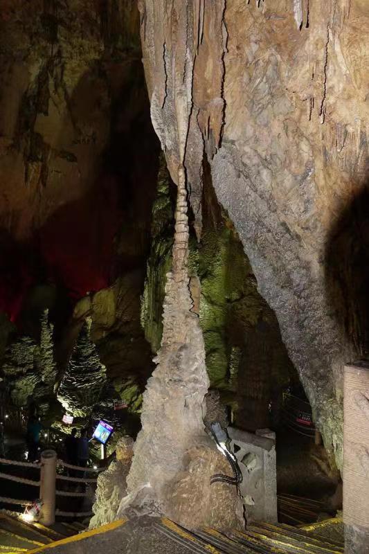 全洞容積達(dá)500萬立方米,有上、中、下三層,洞中遍布石筍、石柱、石芽、石旗等四十多種洞穴堆積物,形成千姿百態(tài)的巖溶景觀。李仁奇 攝