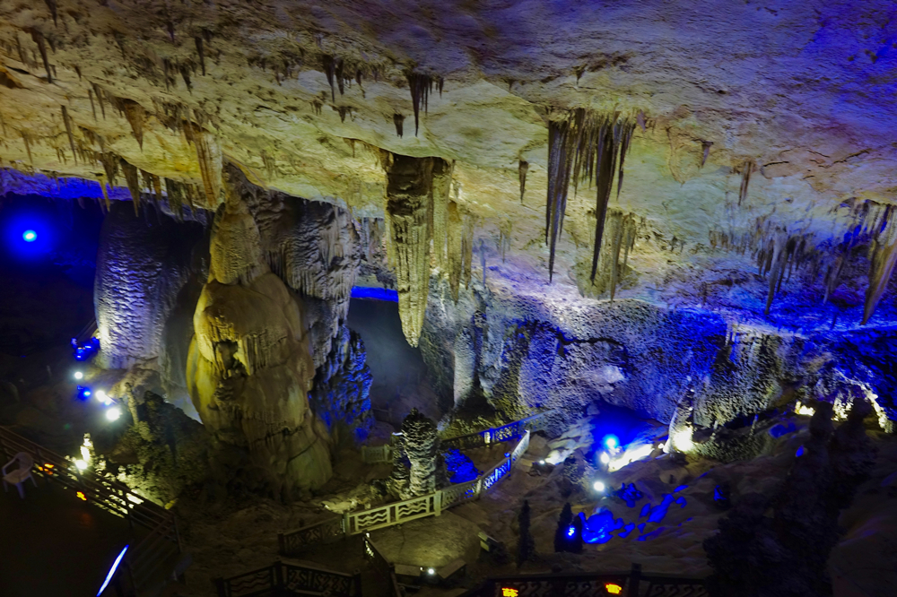 長(zhǎng)達(dá)6公里的游覽線路沿途,有十幾個(gè)空間壯闊的“大廳”,奇形怪狀、體量巨大的鐘乳石令人目不暇接。李仁奇 攝