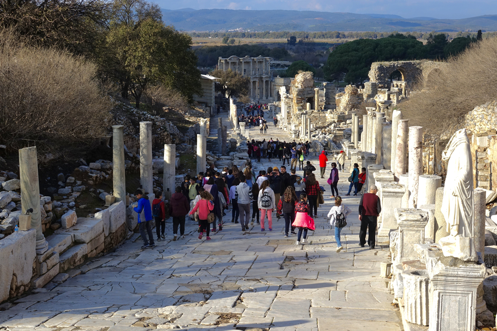 庫里特斯街。是以弗所主要的街道,其兩側(cè)仍存有許多遺跡,沿著街道緩坡可到達上層的市政廳。李仁奇 攝
