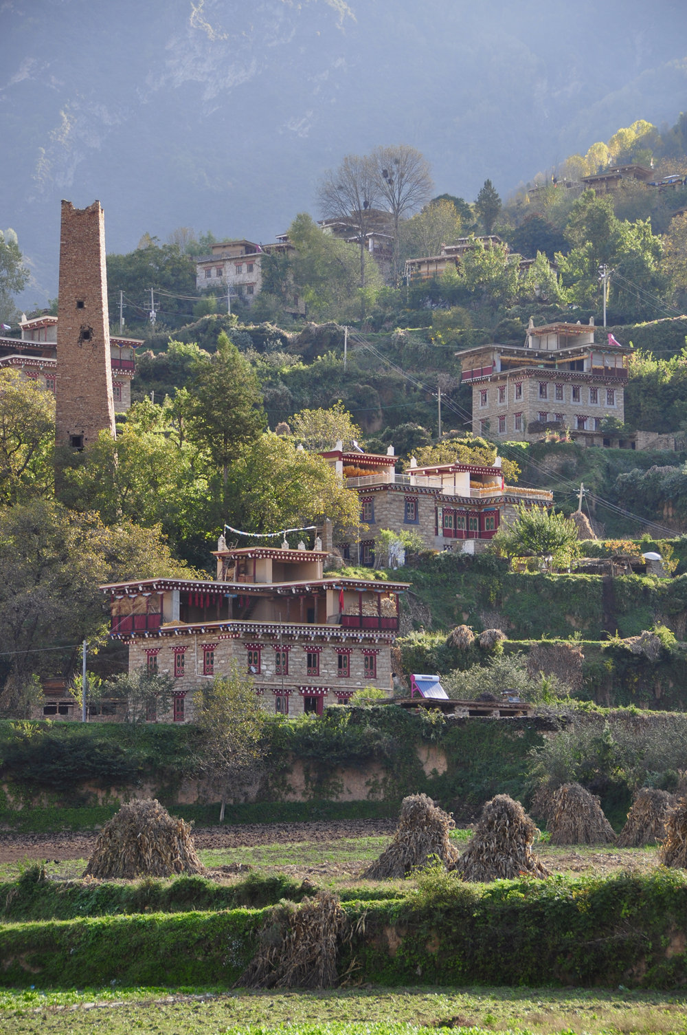 在它的后面三個碉樓特別吸引眼球。左邊第一座是五角碉,第二座是八角碉,第三座是常見的四角碉。李仁奇 攝