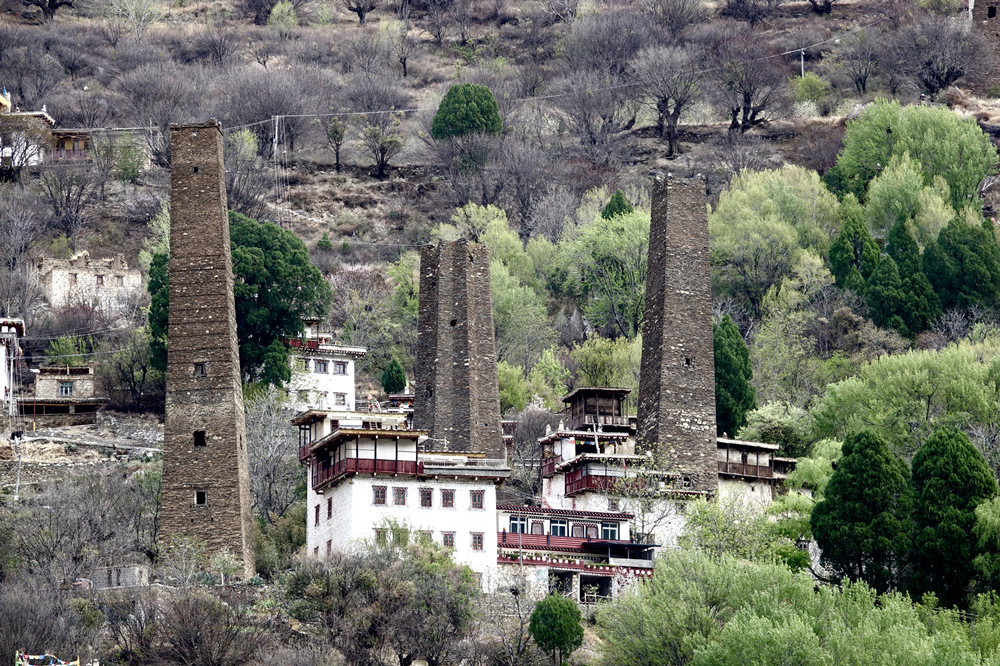 古碉具有千百年的歷史,歷經(jīng)戰(zhàn)爭(zhēng)、地震和風(fēng)雨的沖擊、剝蝕仍巍然屹立。李仁奇 攝