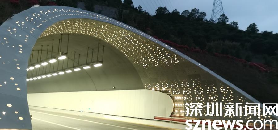 到達隧道的中段部分,映入記者眼簾的是一道道彩色的燈帶,這些燈帶可以根據環(huán)境光變換成七種不同的顏色,可謂科技感十足。在即將駛出隧道口200米處,我們能看采用彩色絲印搪瓷鋼板呈現(xiàn)的坪山地貌風光、鹽田山海風光,這意味著,我們穿過了馬巒山的山體,一下子從坪山來到了鹽田區(qū)范圍內的惠深沿海高速,這趟坪山到鹽田的隧道之旅僅僅不到10分鐘就要結束了。