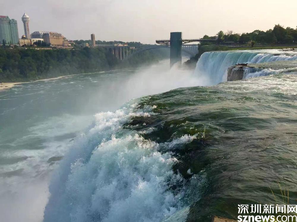遠(yuǎn)處架筑在尼亞加拉河上的是彩虹橋,也是美國(guó)和加拿大的邊界。李仁奇 攝