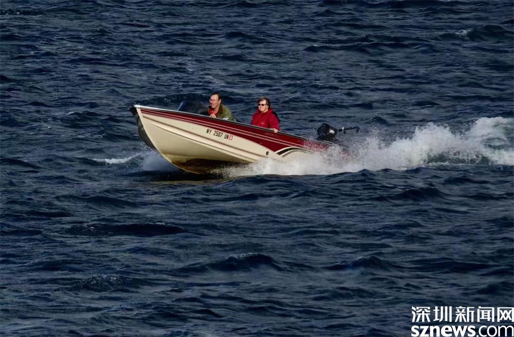 碧藍的湖水與天際相接,私人快艇、水上摩托馳騁在寬廣的千島湖上,為千島湖平添了幾分動感和活力。李仁奇 攝