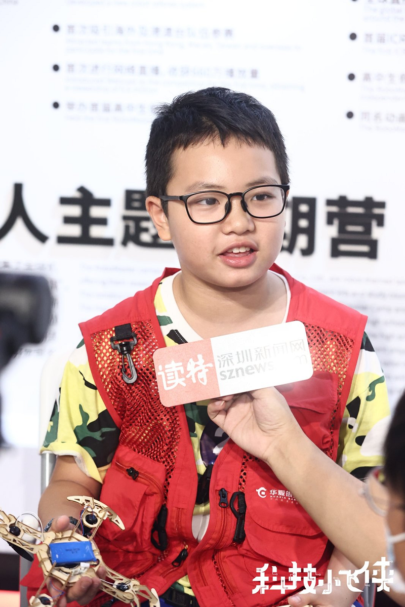 第一個完成木制無人機(jī)的小飛俠接受記者采訪。(圖源:深圳新聞網(wǎng))