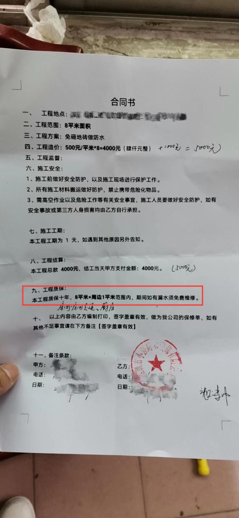 本人于2022年3月29日與該商家簽訂施工合同,支付4000元做防水工程并于當(dāng)天施工,到了雨季發(fā)現(xiàn)施工處依然漏水,聯(lián)系商家上門維修了1次,但之后發(fā)現(xiàn)施工處仍然漏水,多次聯(lián)系商家無(wú)回復(fù)。合同中約定工程質(zhì)保10年,現(xiàn)要求商家按照合同約定免費(fèi)提供維修服務(wù)。