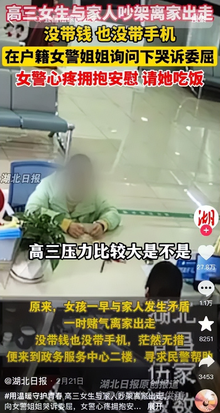 女民警心疼擁抱安慰還請她吃飯