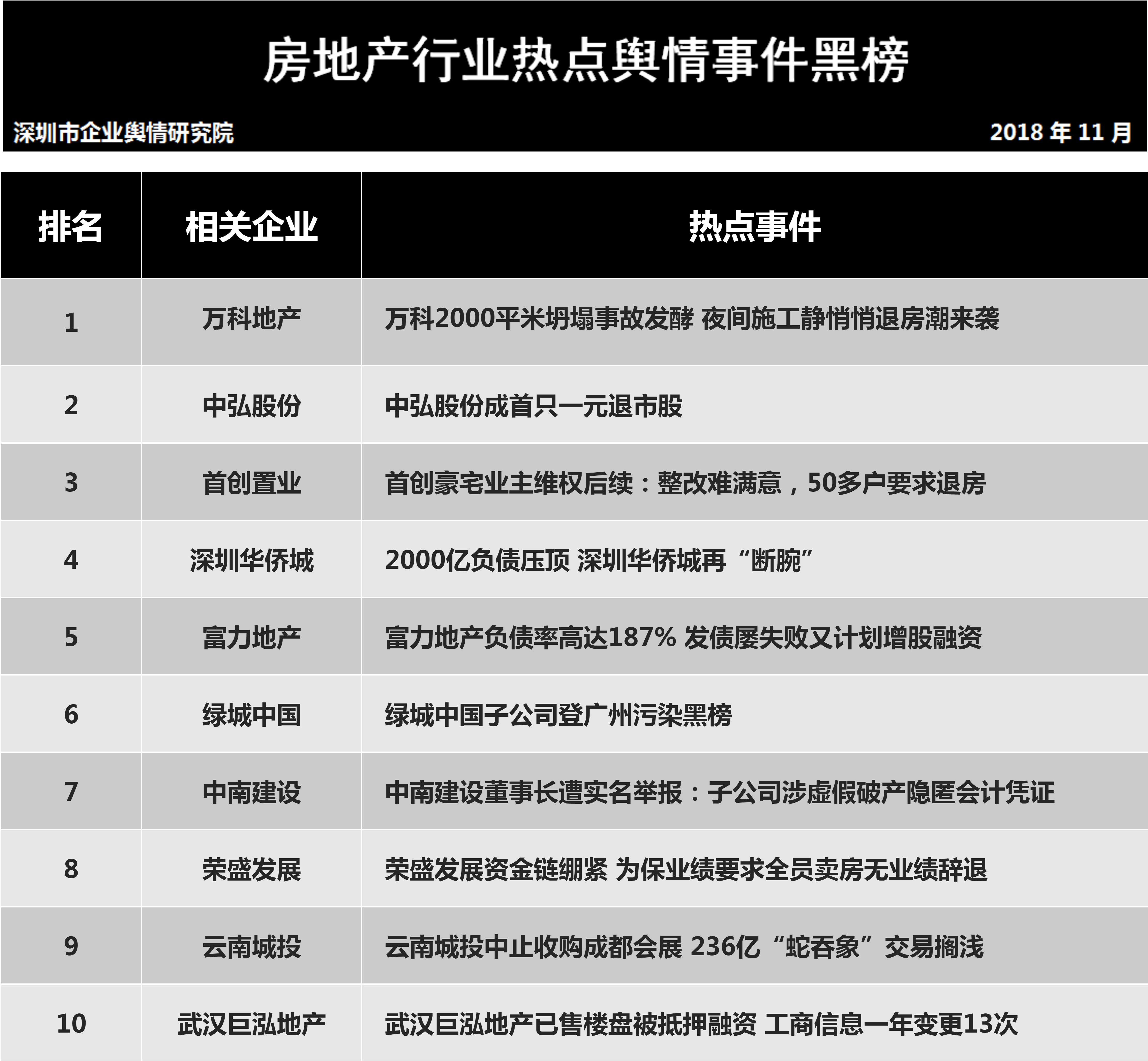 1月7日,深圳企業(yè)輿情研究院發(fā)布第十一批企業(yè)輿情榜單。本次榜單重點(diǎn)聚焦房地產(chǎn)及醫(yī)藥保健兩個行業(yè)。