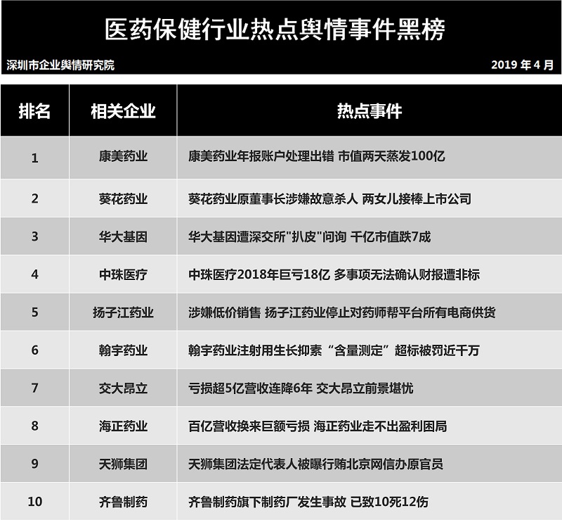 近日深圳企業(yè)輿情研究院發(fā)布第五批企業(yè)輿情榜單。本次榜單重點(diǎn)聚焦房地產(chǎn)及醫(yī)藥保健兩個行業(yè)。醫(yī)藥保健行業(yè)輿情榜單由醫(yī)療保健行業(yè)熱點(diǎn)輿情事件排行榜(紅、黑榜)及醫(yī)藥保健行業(yè)企業(yè)公眾形象排行榜組成。